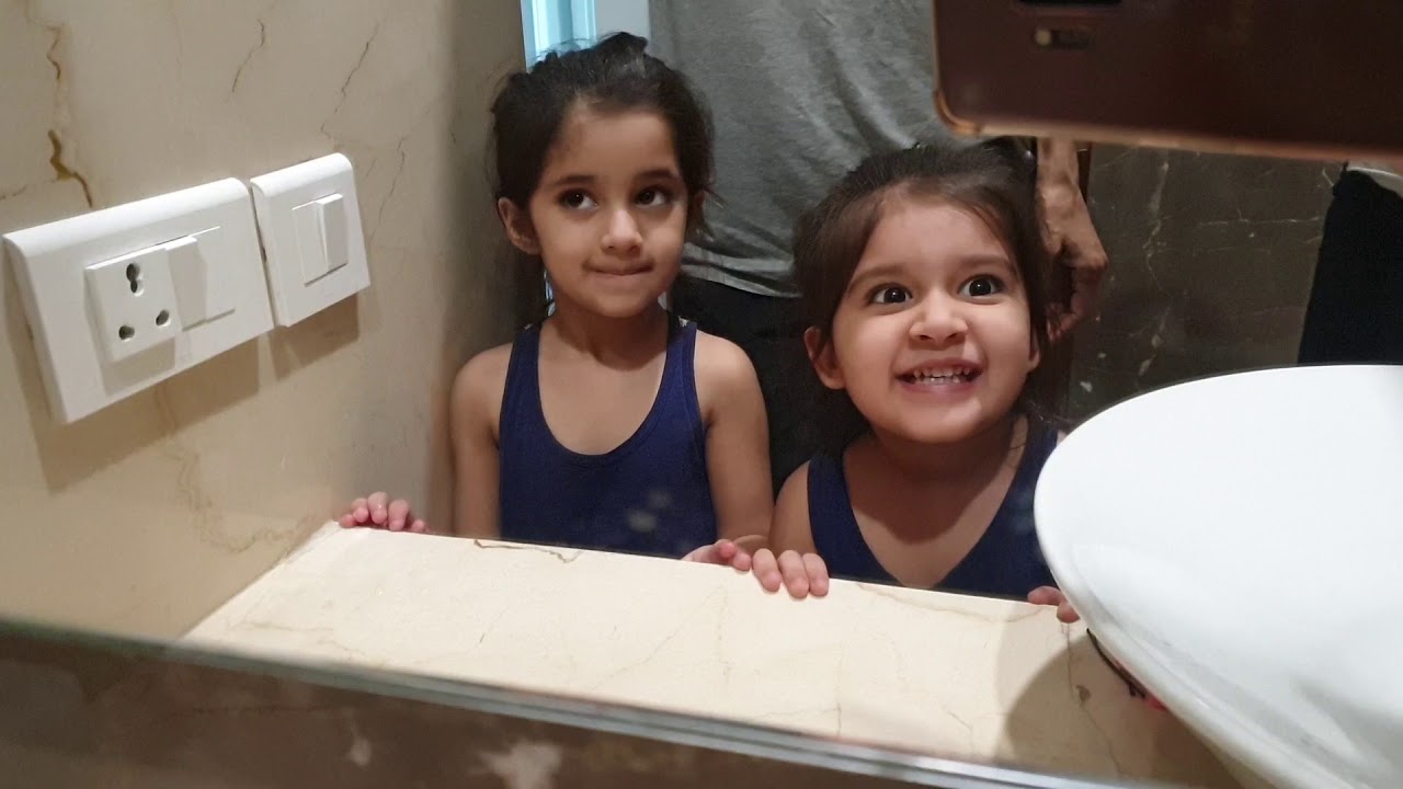 Bella and Vienna see a spider in the bathroom!