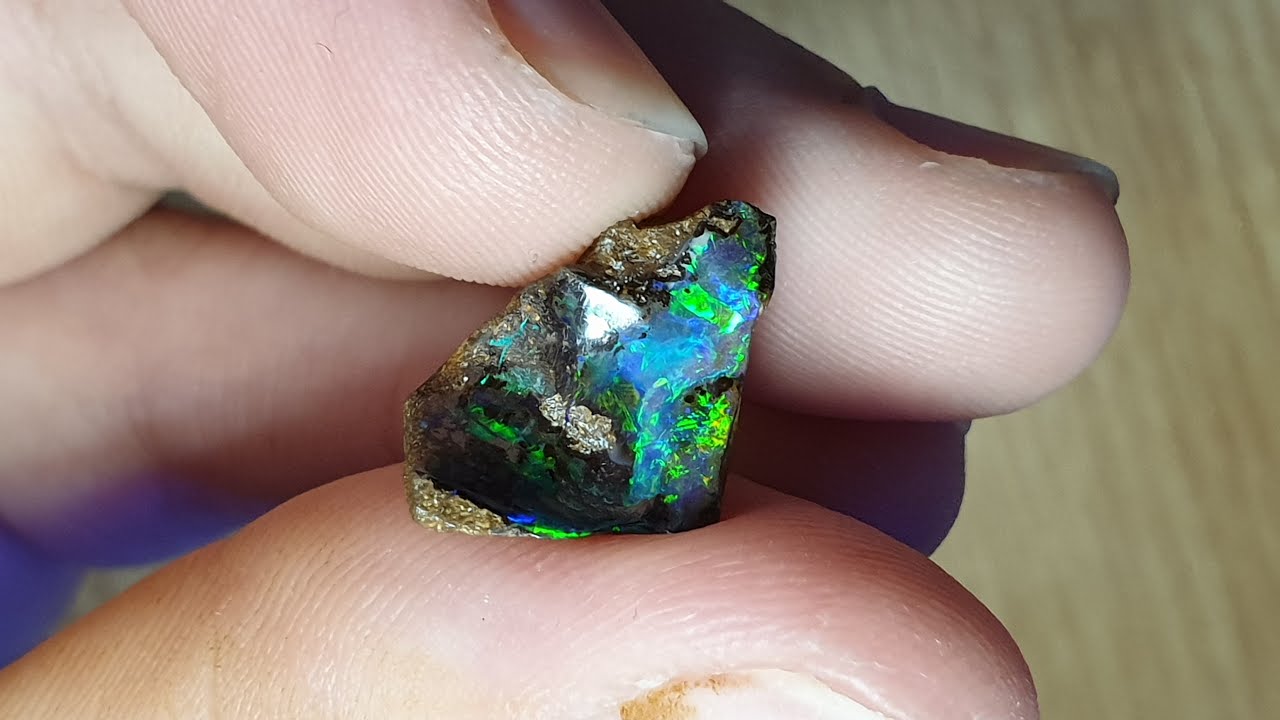 I got a mystery opal out of my box which shows some promise but will it turn in to anything useful. ALWAYS WERE AT MINIMUM A RESPIRATOR WHEN CUTTING ANY STONES and water is a must, not only for minimising dust, but it also helps in reducing heat in a stone to avoid damage.